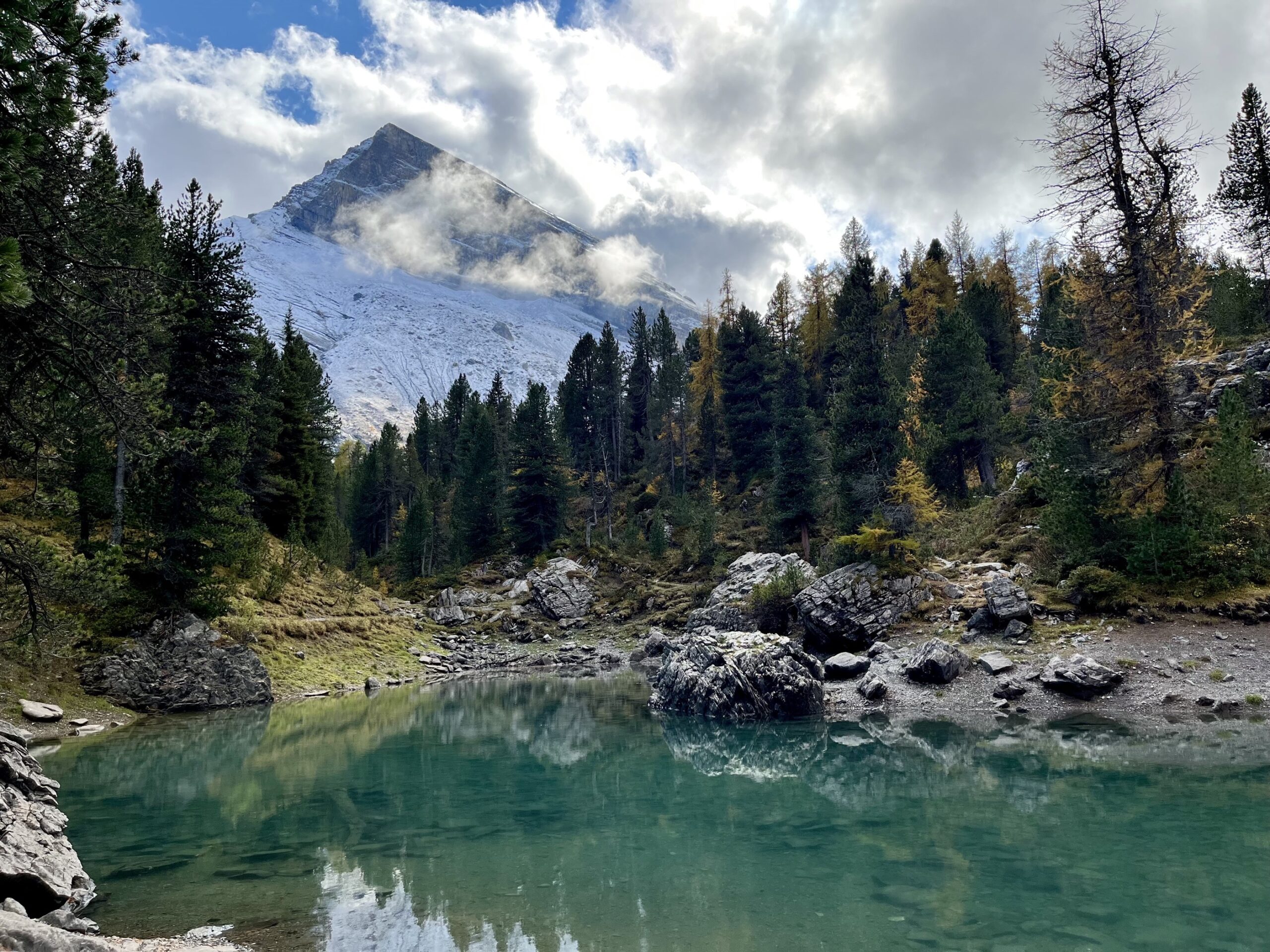 Tiefblau, glasklar und schnell erreichbar: Schmelzwasser speist diese Juwelen bis in den Sommer hinein. Der Arvenwald bleibt, seit Jahrhunderten.