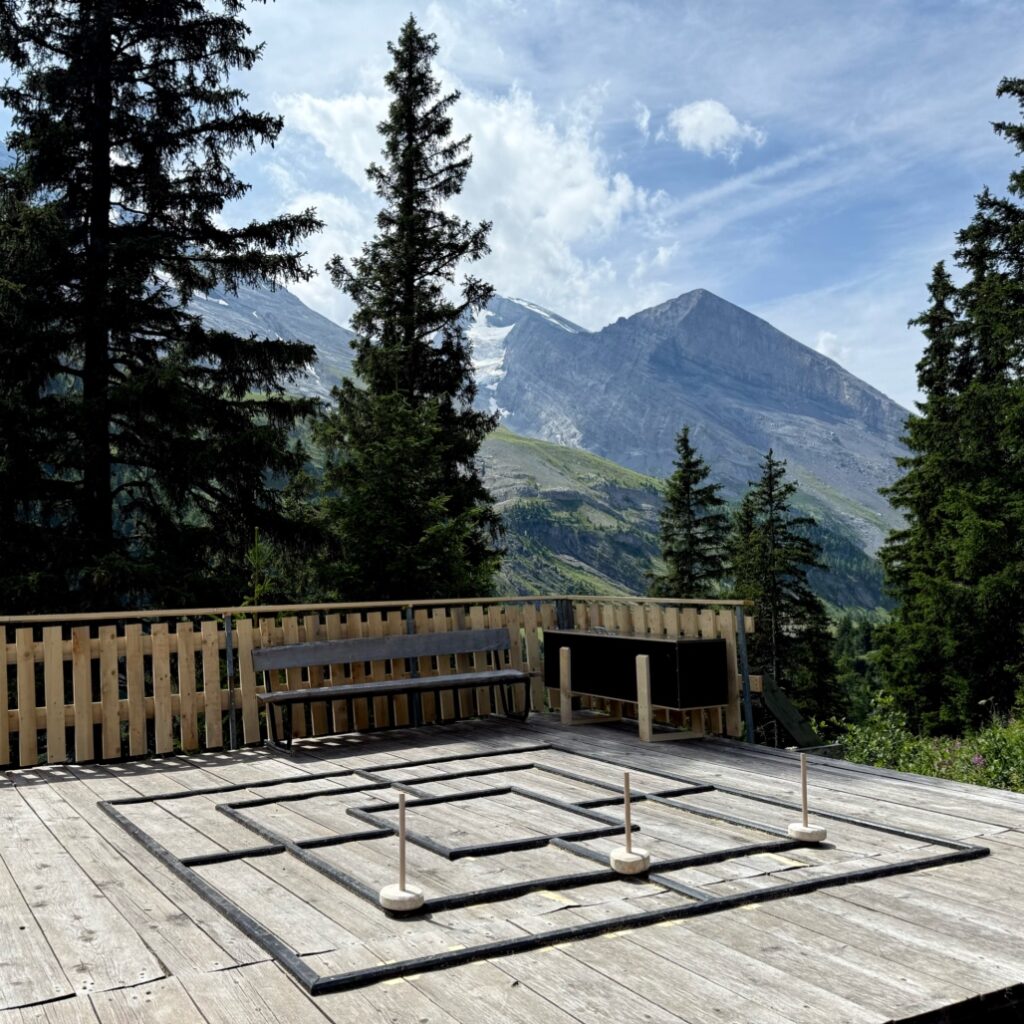 Godi und Kari lieben das Spielen mitten im Bergpanorama. Die beiden haben deshalb beim Bergrestaurant Sunnbüel eine Spielbühne mit Mühle und einer Spielkiste voller Spiele bereit gestellt. Ihr seit herzlich eingeladen die verschiedenen Spiele zu benutzen.